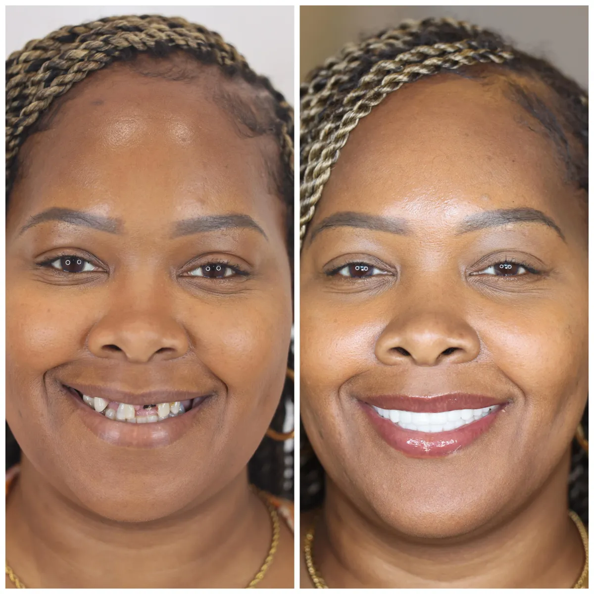 Custom prosthetic fitting for a natural, confident smile.